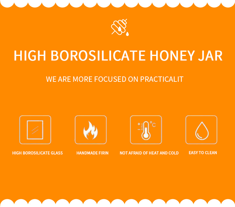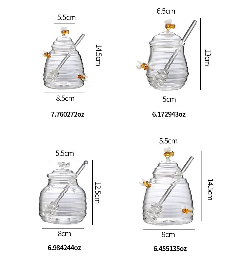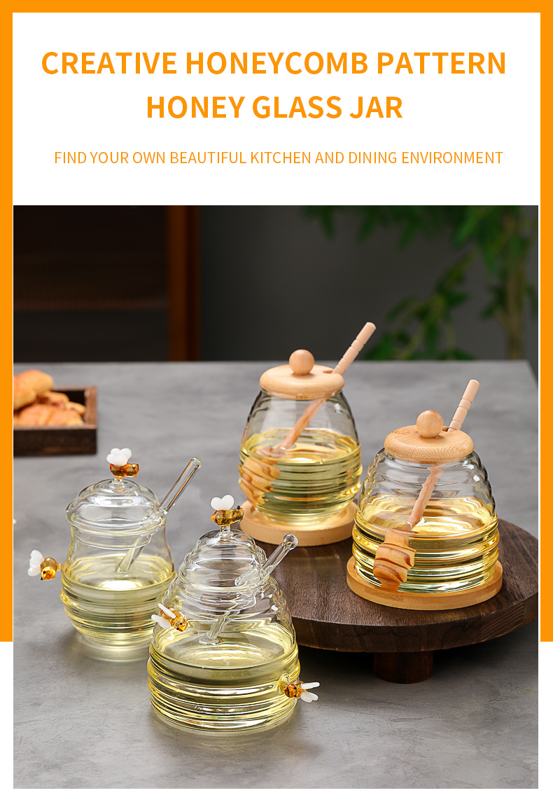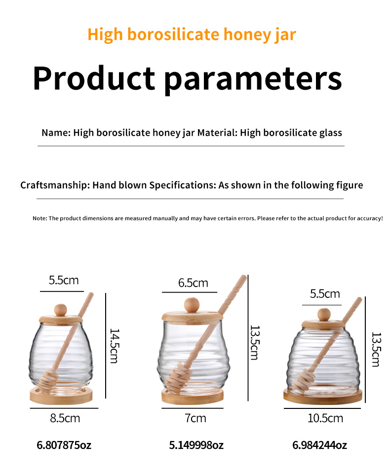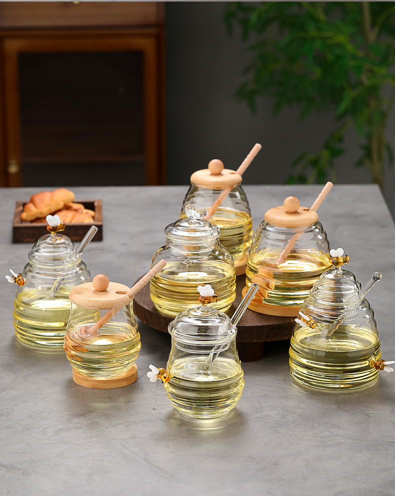 Simple-design honey jar set: Borosilicate glass jars with spoon for honey storage