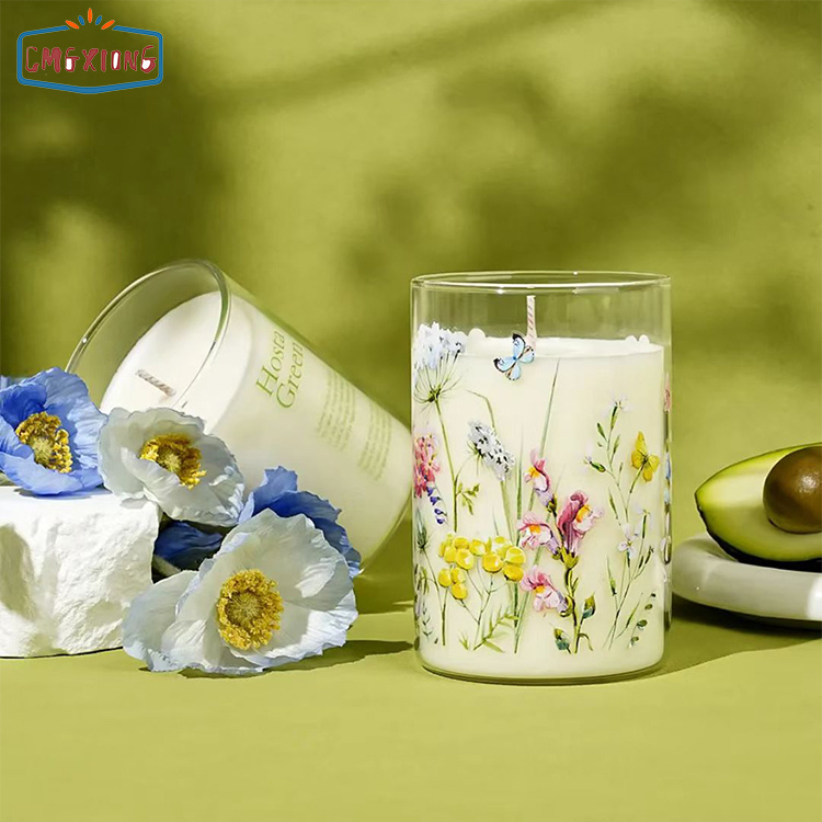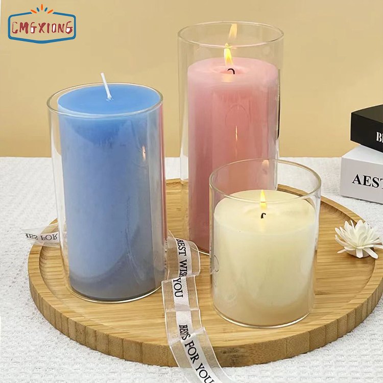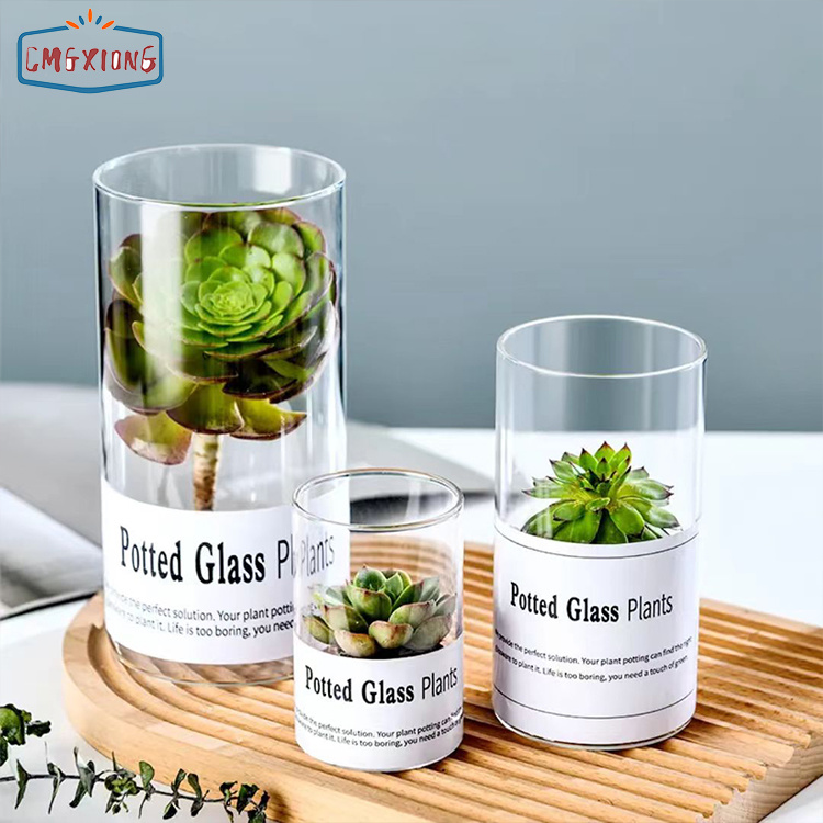 Table candle holder, cylindrical glass vase, tall custom-designed floral abstract vase, thickened transparent glass cylindrical vase