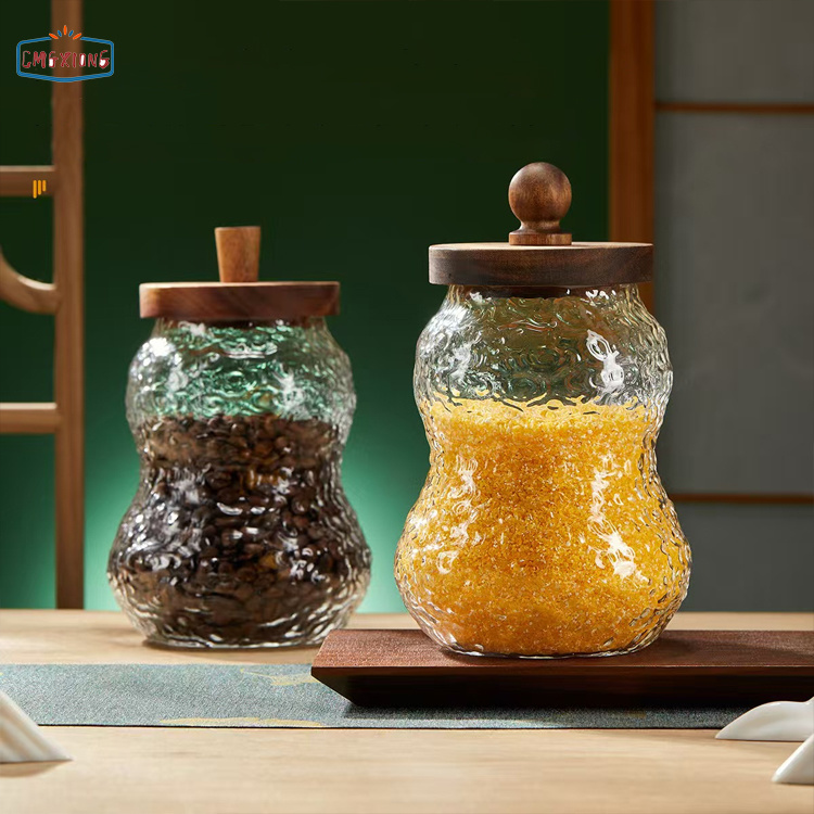 Wholesale kitchen accessories: BPA-free, transparent food containers with a unique, hammer-shaped design—high borosilicate glass jars complete with lids